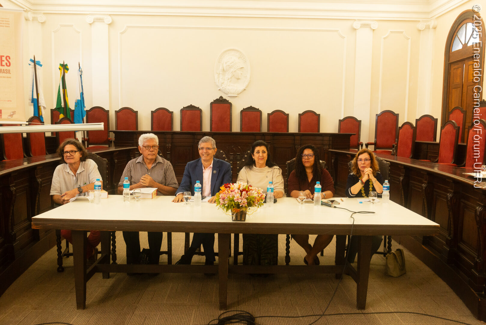 Para abrir a cerimônia, foi composta uma mesa com a participação do Magnífico Reitor da UFRJ, Roberto Medronho, a vice-reitora, Cássia Turci, a diretora da Faculdade de Educação, Ana Paula de Moura, a coordenadora do PROEDES, Ana Lúcia Fernandes, o diretor da Editora UFRJ, Marcelo de Moraes e o Chefe da Divisão de Disseminação e Documentação do Instituto Nacional de Estudos e Pesquisas Anísio Teixeira (INEP), Dorivan Ferreira Gomes.